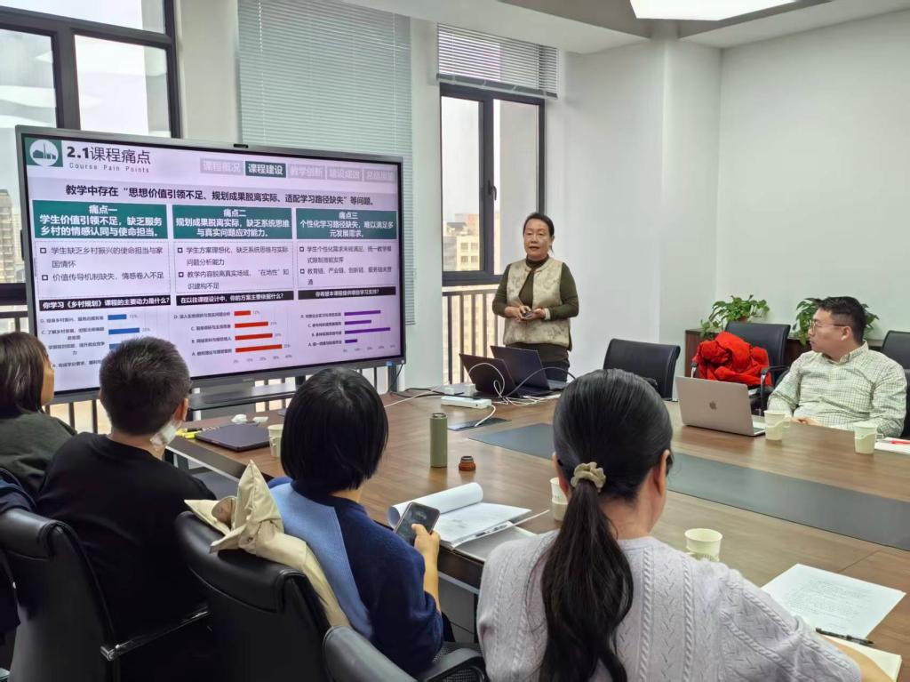 会上,建筑学院荣丽华、经管学院武敏两位老师分享了个人建设体会和成效。教师们就课程目标重构、教学内容优化、教学方法创新等方面分别谈了建设体会,深入交流了建设过程中遇到的共性问题和个性问题,并围绕解决方案展开热烈研讨。