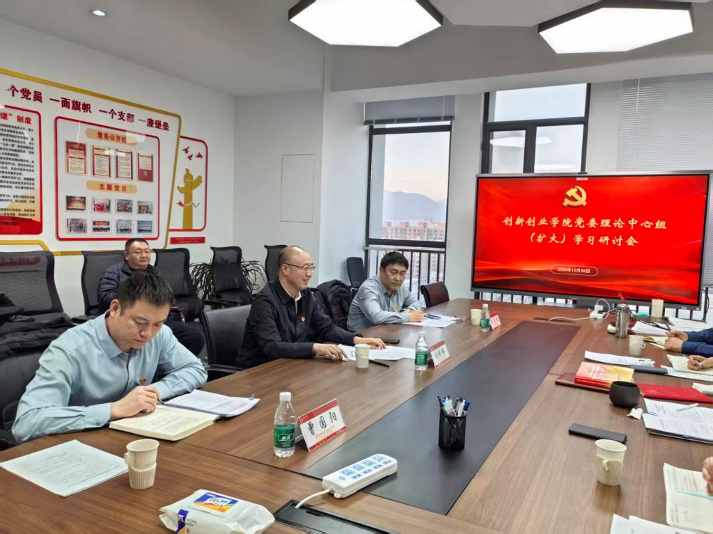 12月26日,创新创业学院党委召开理论学习中心组(扩大)学习研讨会,校党委委员、副校长刘利强到会巡听旁听,并就学院理论武装与事业发展给予指导。