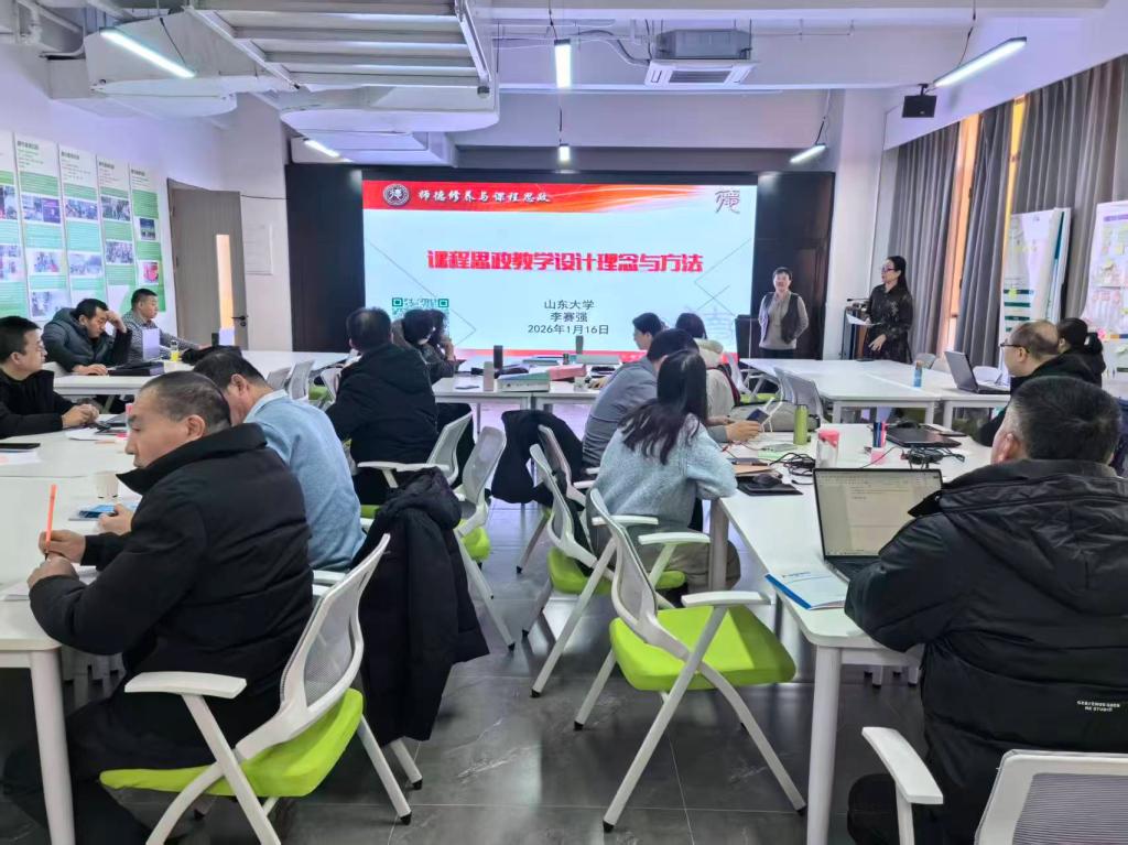 工作坊特邀山东大学教育学博士、国家级课程思政教学研究示范中心骨干成员李赛强教授担任主讲。李教授立足《教育强国建设规划纲要(2024-2035年)》精神,通过互动研讨、案例解析等多种形式,引导教师深入思考思政元素与实践教学的融合点。