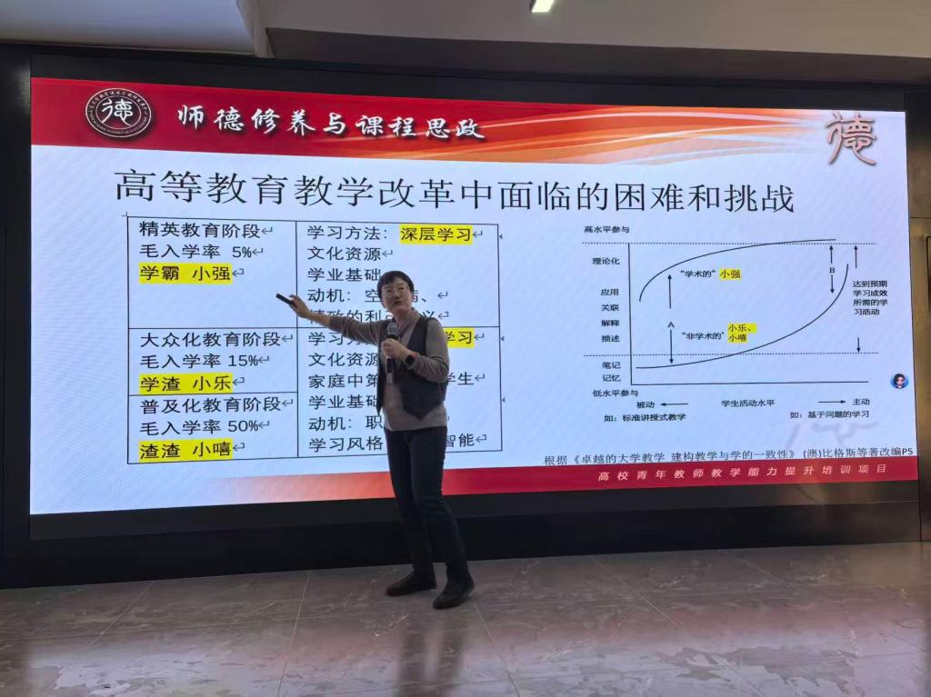 在方法指导环节,李教授重点展示如何借助鲜活思政资源,将工匠精神、工程伦理、家国情怀、责任担当等价值观,自然融入具体实践教学环节。此外,她还介绍了形成性评估与终结性评价相结合的综合评价体系,为课程思政教学效果的持续改进提供了科学依据与实施路径。